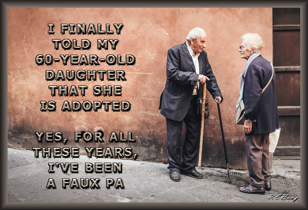 Unrelated Development Image January 31, 2023January 31, 2023 R.E. Berg Age Management, humor, joke, meme, Punishingly Punny Too, Rocky Relationshipsadoption, daughter, delayed, faux, pa, pas, revelation Share this: Click to share on X (Opens in new window) X Click to share on Facebook (Opens in new window) Facebook Like Loading... Related