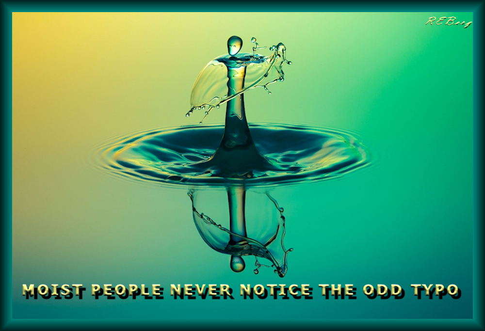 Hiding Hydration Image February 7, 2023February 7, 2023 R.E. Berg humor, joke, meme, Punishingly Punny, Random Observationsattention, detail, error, moist, most, proofreading, typo, typographical, water Share this: Click to share on X (Opens in new window) X Click to share on Facebook (Opens in new window) Facebook Like Loading... Related
