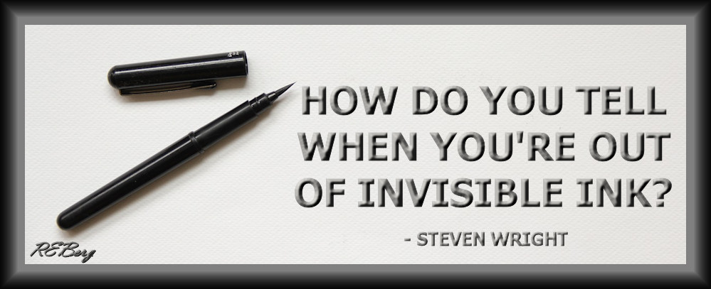 Ghost Writing Image March 14, 2023 R.E. Berg humor, joke, meme, Mental Gymnastics, Quote Quotient, Ready Readinghow, ink, invisible, out, pen, Steven Wright, tell Share this: Click to share on X (Opens in new window) X Click to share on Facebook (Opens in new window) Facebook Like Loading... Related