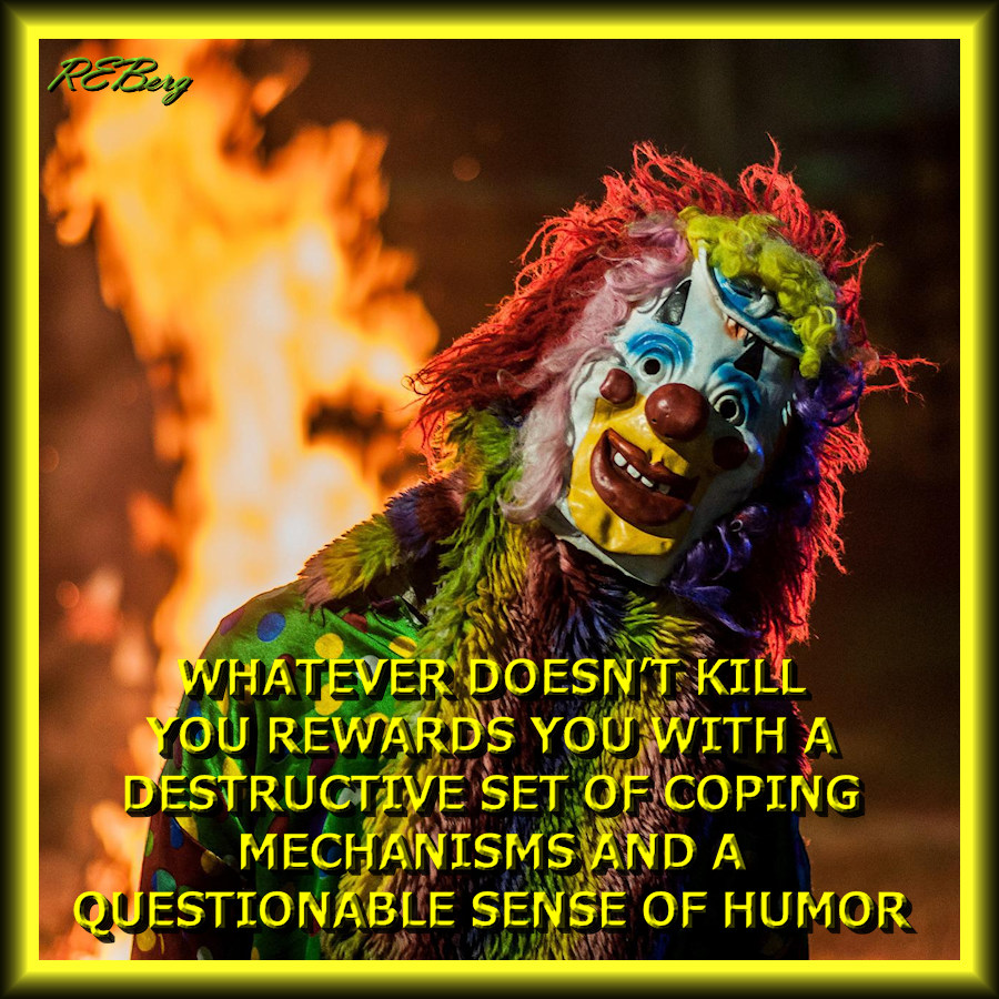 Survival Aids Image April 26, 2023 R.E. Berg humor, joke, meme, Social Hostility, That's Livingcoping, destructive, kill, mechanisms, questionable, rewards, sense of humor, set, whatever Share this: Click to share on X (Opens in new window) X Click to share on Facebook (Opens in new window) Facebook Like Loading... Related