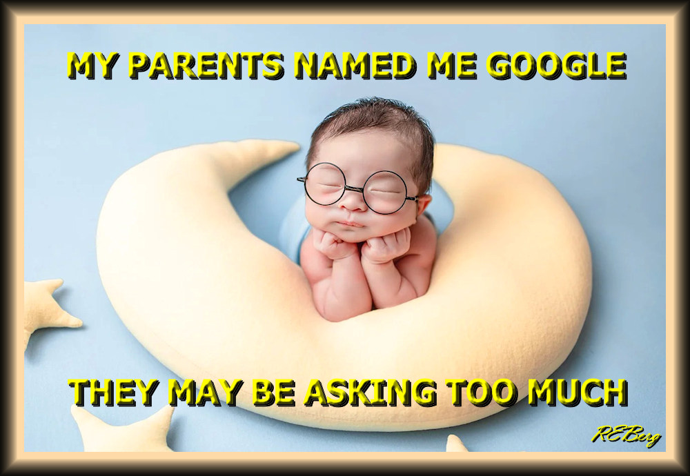 Great Expectations Image May 19, 2023 R.E. Berg humor, Improper Parenting, joke, meme, Punishingly Punnyasking, Google, named, parents, too much Share this: Click to share on X (Opens in new window) X Click to share on Facebook (Opens in new window) Facebook Like Loading... Related