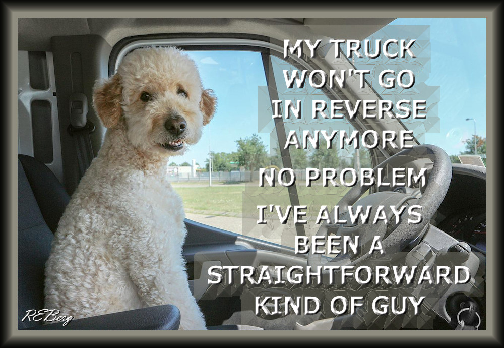 Full Speed Ahead! Image May 23, 2023 R.E. Berg Companion Critters, humor, joke, meme, Punishingly Punny, Travel Traumadog, guy, kind, problem, reverse, straightforward, truck Share this: Click to share on X (Opens in new window) X Click to share on Facebook (Opens in new window) Facebook Like Loading... Related
