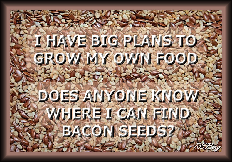 Self-Sustenance Stymied Image May 25, 2023 R.E. Berg Agricultural Acumen, Culinary Curiosities, humor, joke, memebacon, food, grow, plans, seeds Share this: Click to share on X (Opens in new window) X Click to share on Facebook (Opens in new window) Facebook Like Loading... Related