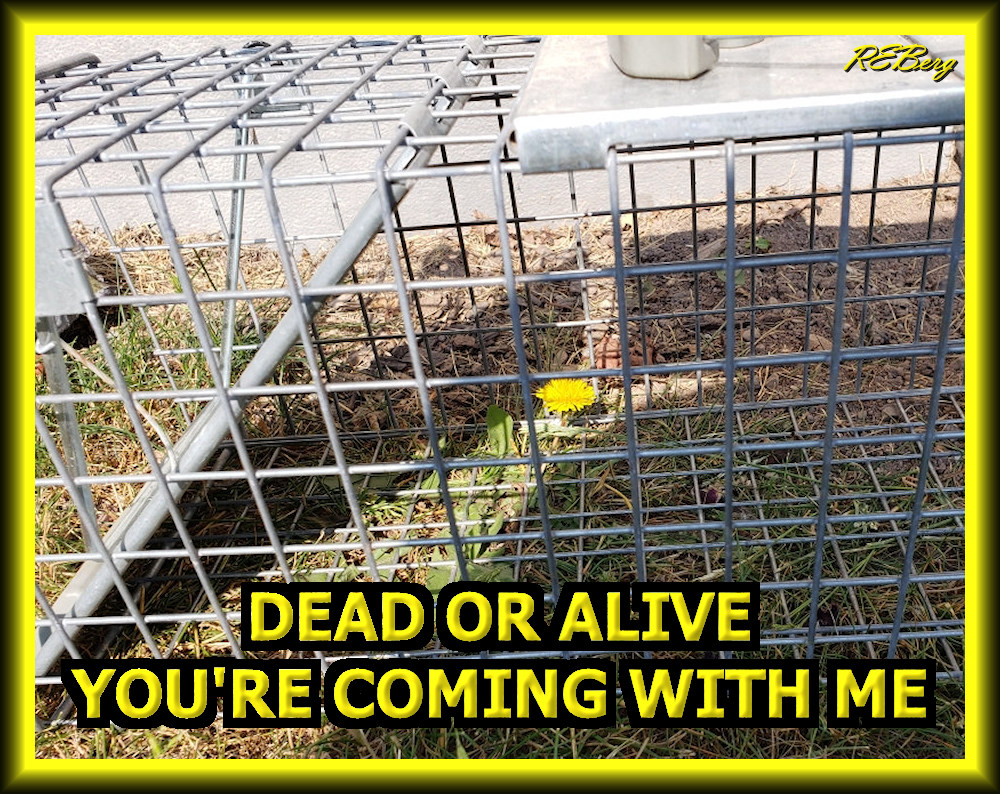 Gotcha! Image June 30, 2023June 30, 2023 R.E. Berg Agricultural Acumen, humor, joke, meme, Rocky Relationships, That's Livingalive, arrest, cage, captured, coming with me, dandelion, dead, lawn, trap, weed Share this: Click to share on X (Opens in new window) X Click to share on Facebook (Opens in new window) Facebook Like Loading... Related