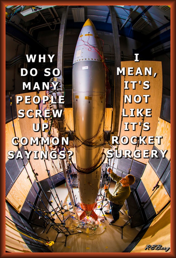 Metaphoric Mixology Image July 13, 2023July 13, 2023 R.E. Berg humor, joke, meme, Mental Gymnastics, Occupational Oddities, Scientific Sensibilitybrain surgery, common sayings, rocket science, rocket surgery, screw up Share this: Click to share on X (Opens in new window) X Click to share on Facebook (Opens in new window) Facebook Like Loading... Related