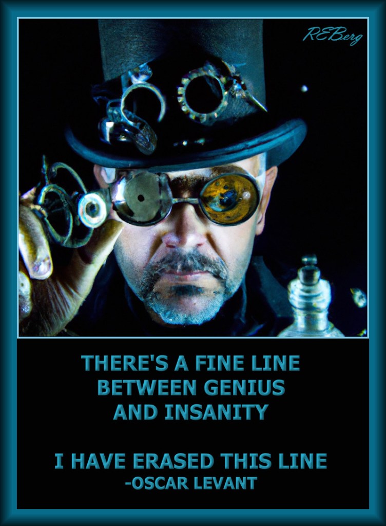 Eraserhead Image July 31, 2023July 31, 2023 R.E. Berg humor, joke, meme, Mental Gymnastics, Quote Quotient, Random Observationsbetween, erased, fine, genius, insanity, line, Oscar Levant Share this: Click to share on X (Opens in new window) X Click to share on Facebook (Opens in new window) Facebook Like Loading... Related
