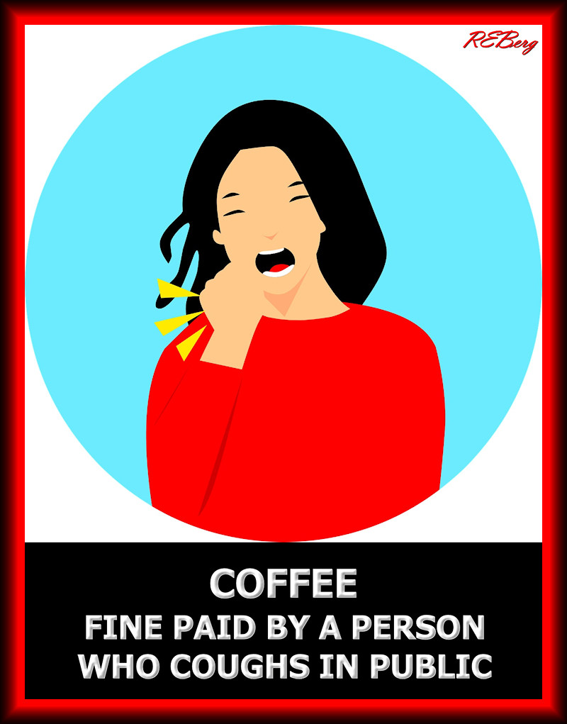 Feeling Fined Image August 5, 2023 R.E. Berg humor, Ill Legalities, joke, meme, Punishingly Punnycoffee, coughers, fee, fine, public, redefinition Share this: Click to share on X (Opens in new window) X Click to share on Facebook (Opens in new window) Facebook Like Loading... Related