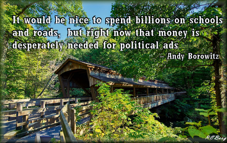 Paving Priorities Image September 25, 2023 R.E. Berg humor, joke, meme, Political Potpourri, Quote QuotientAndy Borowitz, bridges, infrastructure, political ads, repairs, roads, schools Share this: Click to share on X (Opens in new window) X Click to share on Facebook (Opens in new window) Facebook Like Loading... Related