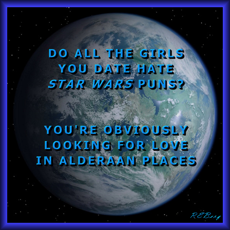 Continue Search Image October 25, 2023 R.E. Berg humor, joke, Marginal Entertainment, meme, Punishingly Punny, Rocky RelationshipsAlderaan, all, date, girls, looking, love, Star Wars, wrong Share this: Click to share on X (Opens in new window) X Click to share on Facebook (Opens in new window) Facebook Like Loading... Related