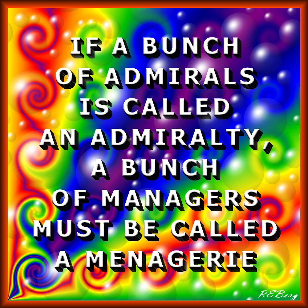 Group Identities Image October 28, 2023 R.E. Berg humor, joke, meme, Occupational Oddities, Punishingly Punnyadmirals, admiralty, group, managers, menagerie Share this: Click to share on X (Opens in new window) X Click to share on Facebook (Opens in new window) Facebook Like Loading... Related