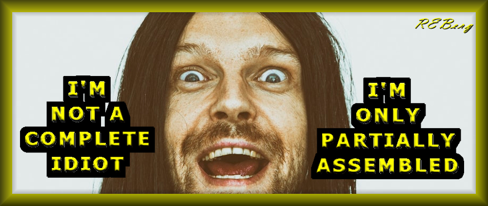 Work In Progress Image November 7, 2023 R.E. Berg humor, joke, meme, Mental Gymnastics, Punishingly Punny Tooassembled, complete, idiot, partially Share this: Click to share on X (Opens in new window) X Click to share on Facebook (Opens in new window) Facebook Like Loading... Related