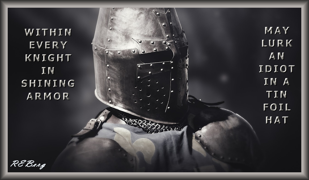 Brainwave Barricade Image December 31, 2023 R.E. Berg humor, joke, meme, Occupational Oddities, Random Observations, Social Hostilityidiot, knight, lurk, shining armor, tin foil hat Share this: Click to share on X (Opens in new window) X Click to share on Facebook (Opens in new window) Facebook Like Loading... Related