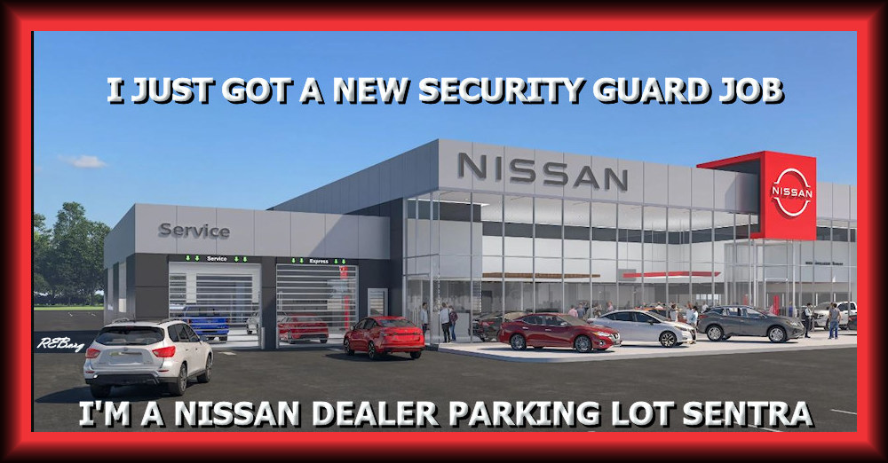 Challenger Image January 5, 2024 R.E. Berg humor, joke, meme, Occupational Oddities, Punishingly Punnydealer, guard, job, lot, new, Nissan, parking, security, Sentra Share this: Click to share on X (Opens in new window) X Click to share on Facebook (Opens in new window) Facebook Like Loading... Related