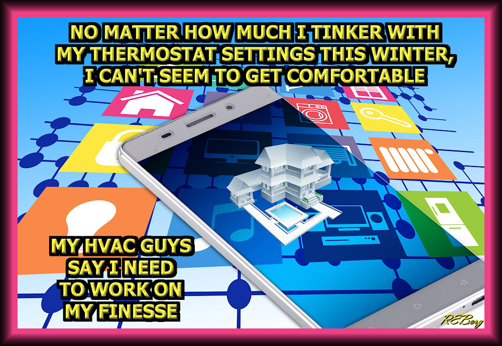 Fine Tuning Image February 11, 2024February 11, 2024 R.E. Berg humor, joke, meme, Punishingly Punny, That's Livingcomfortable, finesse, furnace, HVAC, settings, thermostat, tinker, winter, work Share this: Click to share on X (Opens in new window) X Click to share on Facebook (Opens in new window) Facebook Like Loading... Related