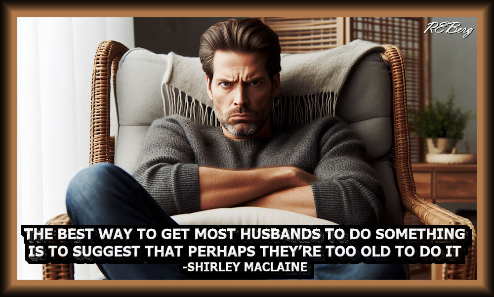 Challenge Of The Ages Image August 12, 2024 R.E. Berg Fantasy Fitness, humor, joke, meme, Mental Gymnastics, Quote Quotient, Random Observations, Rocky Relationshipsbest, challenge, chores, husbands, incapable, old, persuade, Shirley Maclaine, suggest Share this: Click to share on X (Opens in new window) X Click to share on Facebook (Opens in new window) Facebook Like Loading... Related