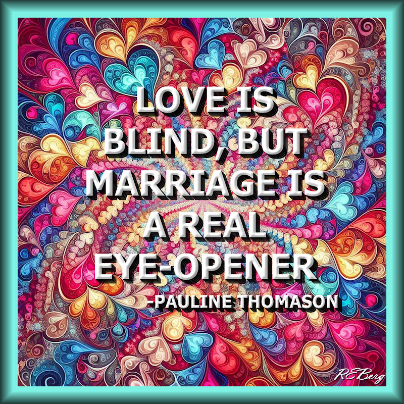 Visual Vows Image September 7, 2024 R.E. Berg humor, joke, meme, Punishingly Punny Too, Quote Quotient, Rocky Relationships, Social Hostilityblind, eye, love, marriage, opener, Pauline Thomason, real Share this: Click to share on X (Opens in new window) X Click to share on Facebook (Opens in new window) Facebook Like Loading... Related