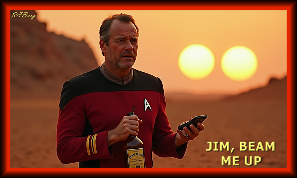 Inebriated Transport Image January 22, 2026January 22, 2026 R.E. Berg Deadly Living, humor, Imaginary Reality, joke, Locational Logic, Marginal Entertainment, meme, Punishingly Punny, Travel Traumaalcohol, away team, beam, casualty, drinking, James T. Kirk, Jim, Jim Beam, non-survivor, planet, Red Shirt, Star Trek Share this: Share on X (Opens in new window) X Share on Facebook (Opens in new window) Facebook Like Loading... Related
