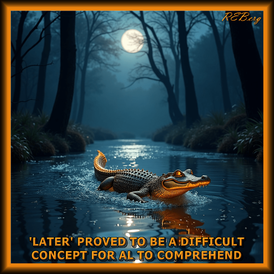 Again? January 31, 2026 R.E. Berg Companion Critters, humor, Imaginary Reality, joke, Marginal Entertainment, meme, Mental Gymnastics, Random Observations, Rocky Relationships, Special Daysalligator, comprehend, concept, difficult, later, proved, rhyme, saying, see ya Share this: Share on X (Opens in new window) X Share on Facebook (Opens in new window) Facebook Like Loading... Related
