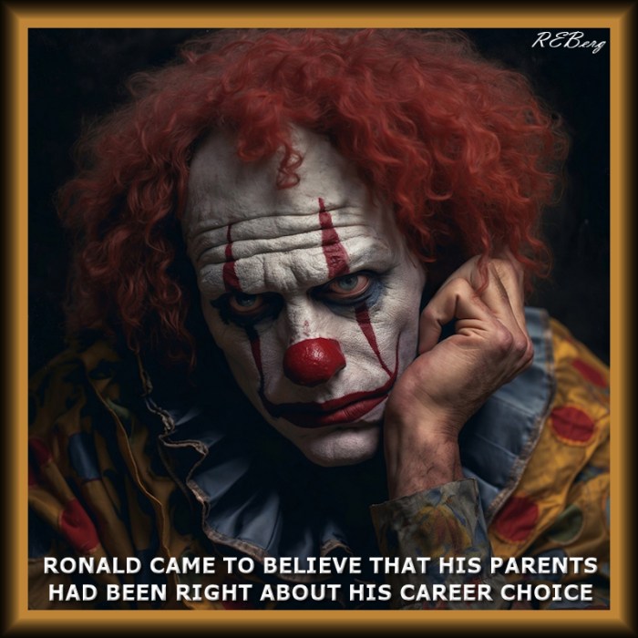 Rethinking Image February 28, 2026 R.E. Berg Education Sensation, humor, Improper Parenting, joke, Marginal Entertainment, meme, Mental Gymnastics, Occupational Oddities, Random Observations, Rocky Relationships, Social Hostilitybelieve, career, choice, clown, had been right, makeup, parents, professional Share this: Share on X (Opens in new window) X Share on Facebook (Opens in new window) Facebook Like Loading... Related