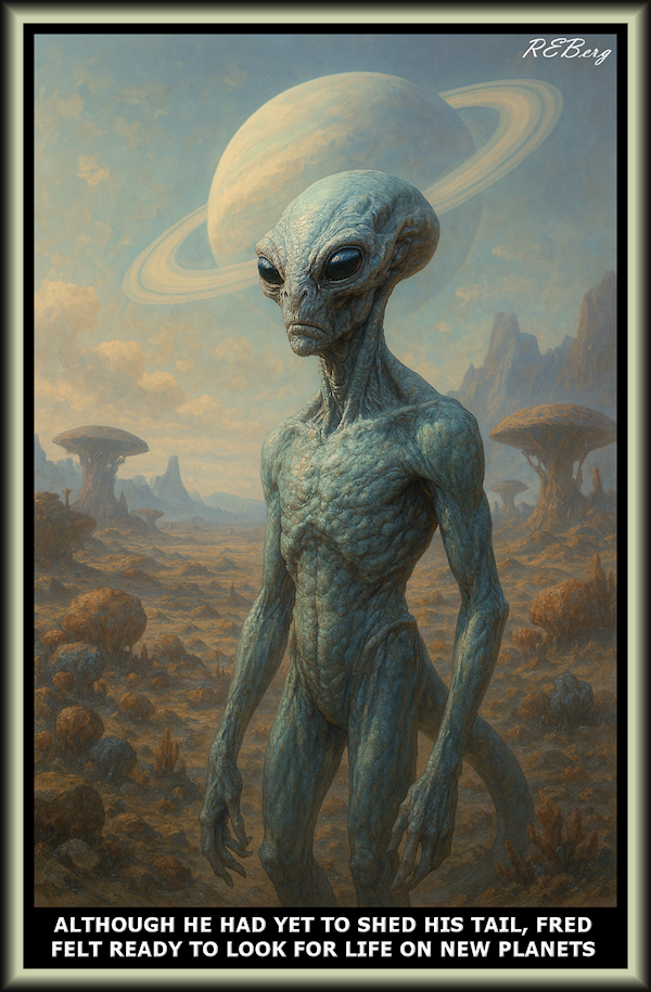 Prehensile Utensil March 23, 2026 R.E. Berg humor, Imaginary Reality, joke, Locational Logic, Marginal Entertainment, meme, Scientific Sensibilityalien, felt ready, for life, look, new planets, shed, tail Share this: Share on X (Opens in new window) X Share on Facebook (Opens in new window) Facebook Like Loading... Related