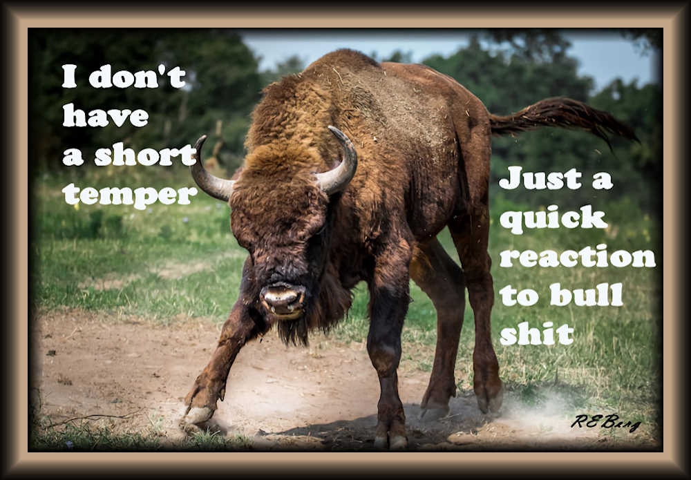 Anti-BS Policy Image March 26, 2026 R.E. Berg humor, joke, meme, Social Hostilityanger, bull, bullshit, charge, quick, reaction, short, temper Share this: Share on X (Opens in new window) X Share on Facebook (Opens in new window) Facebook Like Loading... Related