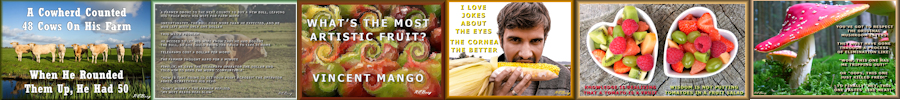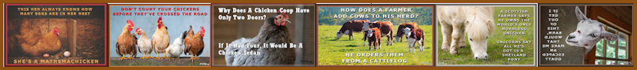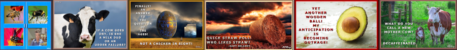 AGRICULTURAL ACUMEN Accountant’s Nightmare Agricultural Expansion Asinine Notion Barnyard Bards Be Specific Botanical Blunder Bovine Bafflement Bovine Expansion Bovine Punchline Bully! The Cheese Stands Alone Chicken Sedan Chilling Chickens Clear Cause Clearly Cloven Clucking Accountant Comb Sweet Comb Come For The Bull Condimental Crime Conversational Cows Conversational Flora Cowabungle Creative Fruition Cry For Help Cut And Dried Didja Do It? Dramatic Distraction Enriching Development Equine Consensus Farm Assist Feed Me, Seymour Field Of View First Come, First Served Flight Risk Fodder Feelings Foreign Market Fowl Poetry Full Commitment Fungal Failure Gimme A Break Going Green Gotcha! Grainy Gaze Growing Problem Happy Endings Heard By The Herd Horticultural Hint Information Application Intellectually Unchallenging Invasive Species Just Aspen Language Barrier Last Laugh Less Fat Marketing Challenge Marketing Misnomer Meat And Greet Mooving Occupation Muddied Inspiration Mushroom Roulette No Grain, No Pain No More Jitters No Surprise Prize Not The Answer Nutritional Allegation Obstacle Avoidance Opportunity Unrecognized Overcoming Adversity Pony Phony Porky Peers Poultry Prisoners Poultry Reproduction Predestined Dehydration Productive Conversation Protein Quarantine Repeat Customer? Restocking Restricted Access Robotic Resurrection Role Model Seasonal Decision Secreting Society Self-Sustenance Stymied Simple Solution Sounds Like A Plan Spatial Maximization Squeal Squelched Still Hungry Stockyard Stand-Up Straight From The Beak Support Buds Tasty Tune Territorial Announcement That’ll Be One Dollar Traffic Tally Trash Talkers Thrashed Triple Trouble Udderly Unbelievable Vegetation Vexation Wheah Have All The Ahs Gone? Whiner! You Must Be Yolking Share this: Click to share on X (Opens in new window) X Click to share on Facebook (Opens in new window) Facebook Like Loading...