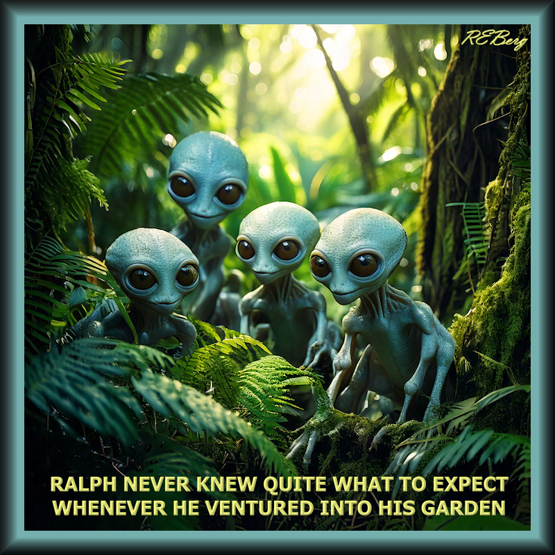 Invasive Species Image June 13, 2025 R.E. Berg Agricultural Acumen, Companion Critters, humor, Imaginary Reality, joke, meme, Rocky Relationships alien pests, garden, unexpected, venture