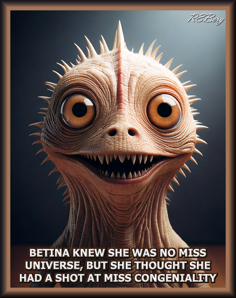 Pleasant Personality Image July 19, 2025 R.E. Berg Fabulous Fashion, humor, Imaginary Reality, joke, Marginal Entertainment, meme, Mental Gymnastics, Random Observations, Social Hostility knew, Miss Congeniality, no Miss Universe, thought she had a shot
