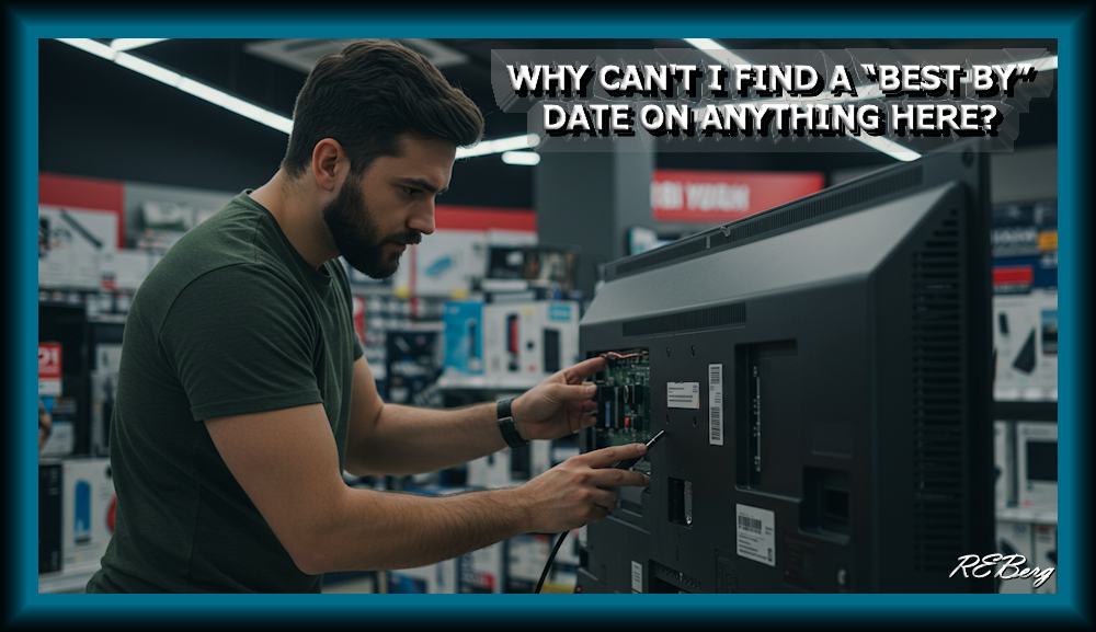 Maybe A Born On Date? Image February 1, 2025 R.E. Berg humor, Ill Legalities, joke, meme, Punishingly Punny, Random Observations Best Buy, best by, customer, electronics, expiration, labeling, obsolete, old tech, store, tv set