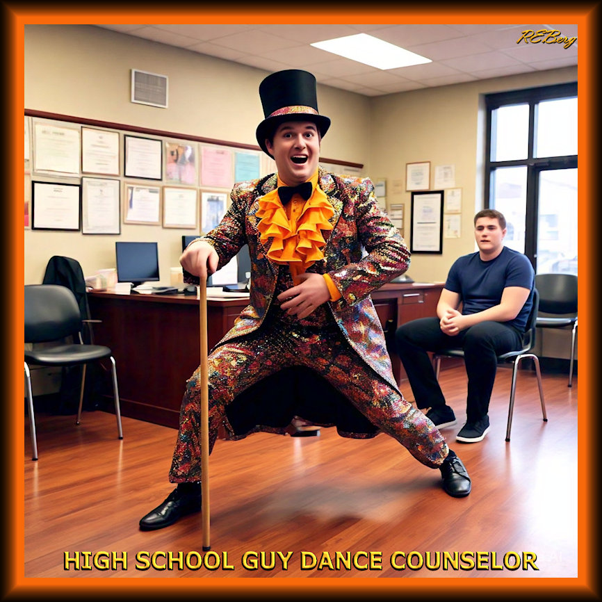 Terpsichorean Tutor Image February 22, 2025February 22, 2025 R.E. Berg Education Sensation, humor, Irrational Recreation, joke, Marginal Entertainment, meme, Musical Mayhem, Occupational Oddities, Punishingly Punny Too counselor, demonstration, guidance, guy dance, high school