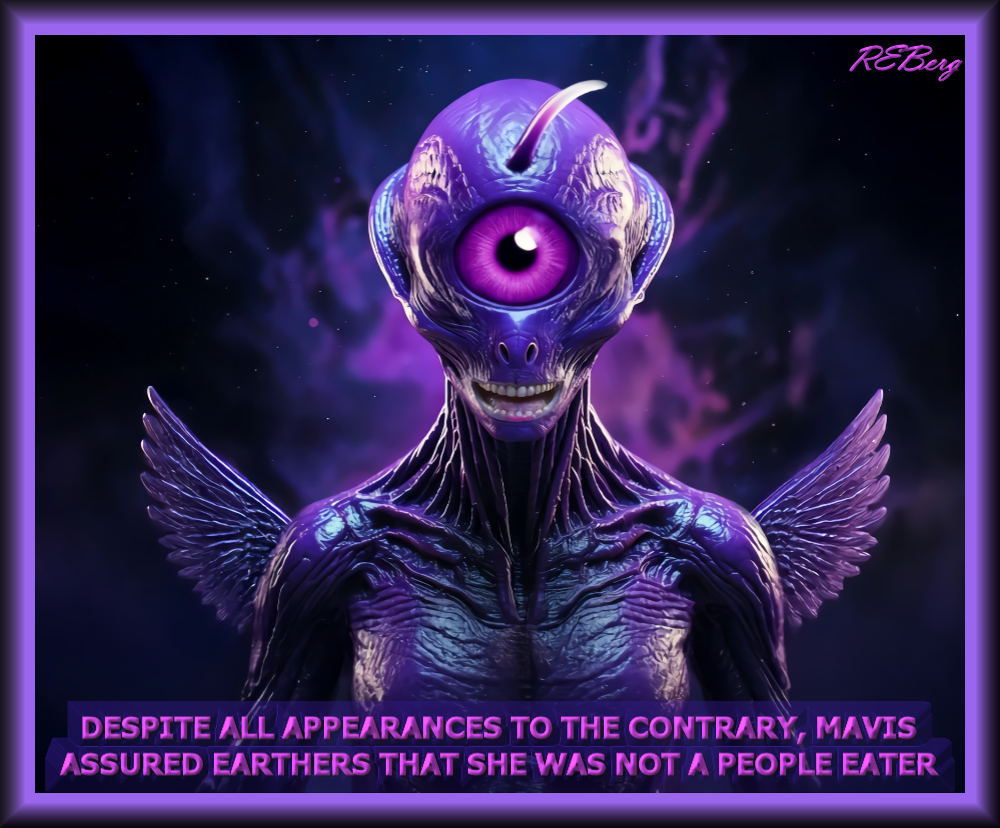 Remarkable Resemblance Image July 29, 2025 R.E. Berg Companion Critters, humor, Imaginary Reality, joke, Marginal Entertainment, meme, Musical Mayhem, Social Hostility assured Earthers, despite all appearances, flyin', long horn, not a people eater, one-eyed, purple, sure looked stange to me