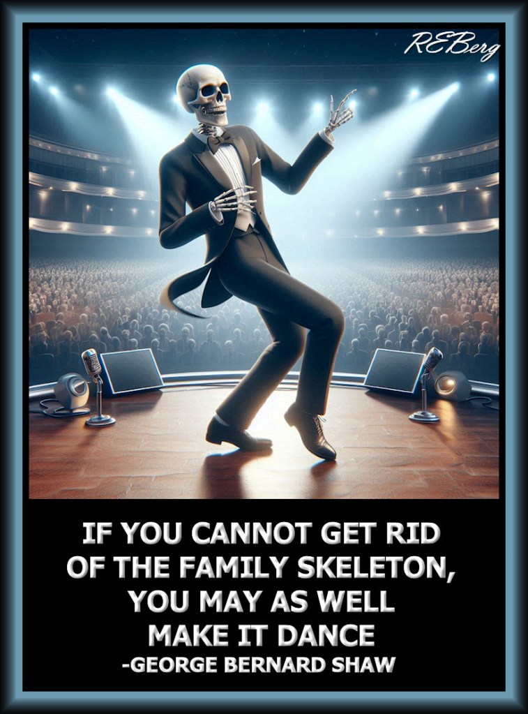 Spinal Tap Image August 12, 2025 R.E. Berg humor, Imaginary Reality, joke, Marginal Entertainment, meme, Mental Gymnastics, Musical Mayhem, Quote Quotient, Random Observations cannot get rid, family skeleton, George Bernard Shaw, make it dance, may as well