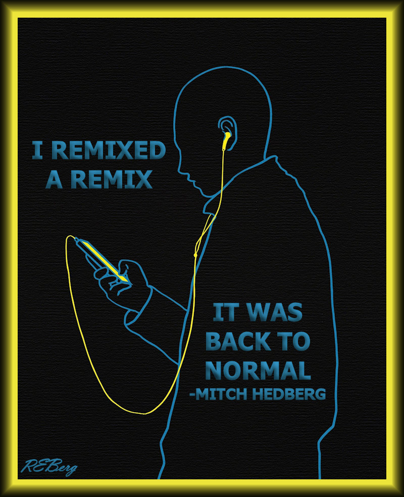 Total Reset Image September 13, 2025 R.E. Berg humor, Irrational Recreation, joke, Marginal Entertainment, meme, Mental Gymnastics, Musical Mayhem, Quote Quotient back to normal, cellphone, earphones, Mitch Hedberg, remix, remixed