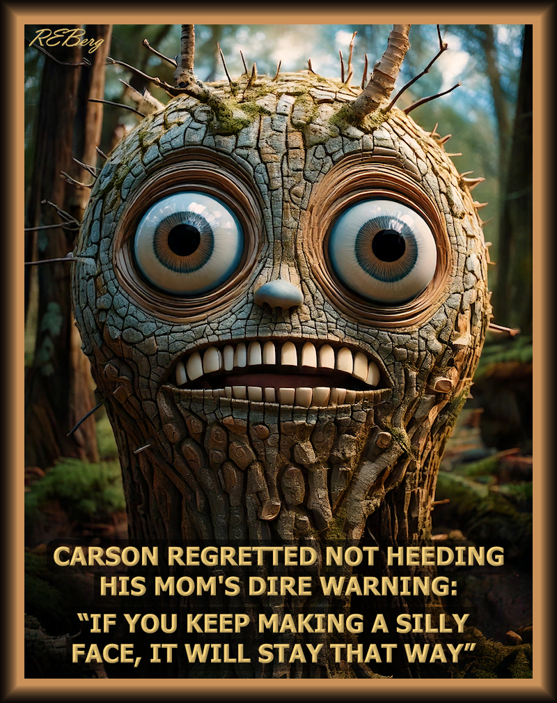 What Did I Tell You? Image November 17, 2025 R.E. Berg humor, Imaginary Reality, Improper Parenting, joke, meme, Mental Gymnastics, Quote Quotient, Random Observations, Rocky Relationships, That's Living dire warning, heeding, keep making, mom, regretted, silly face, stay, that way