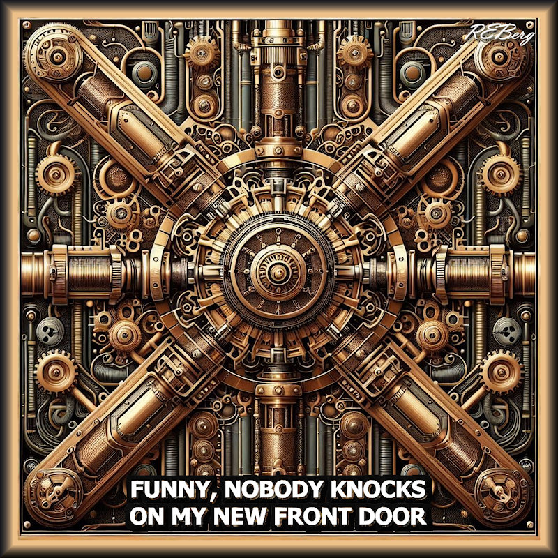 Image November 4, 2025 R.E. Berg humor, Imaginary Reality, joke, meme, Mental Gymnastics, Social Hostility, That's Living door, front, funny, knocks, new, nobody, protection, vault