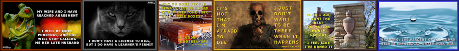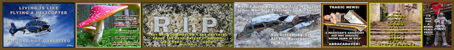 LIVELY DYING Accord Announcement All Hands On Deck! Altitude Attitude American Drugscape An Abundance Of Caution And The Beat Goes On Anticipated Action An Apocalypse By Any Other Name Apocalyptic Conviction Banking Memories Best Case Scenario Best Way To Go Better Bring Butter Boxing Match Calculated Expectancy Caught In The Middle Claim To Flame Clearly Gone Clouded Memories Consider The Alternative Crime-Solving Head Start Daily Dare Date With Death Dawn Of The Living Dead Dead-End Rush Dead Wrong Delayed Departure Dilate Distinctly Extinct Doorbusters Dying Wish Earned Outcome ETD Exceptional Expectations Faceoff Famous Last Words Fatal Attraction Fatal Exposure Fatal Hydration Final Acquisition Final Destination Final Distribution Funeral Faux Pas Ghost Publisher Needed Gimme A Little Credit Go Big Go Figure A Good Day To Dye Grand Exit Grand Exit 2.0 Grave Business Greased Lightning Halloween Dreams Hanging It Up Hazardous Habits Health Hazard Healthy Hindsight Heart Of The Matter Hot Topic If Only I’m In! Immortal Wish Injection Correction Introspective Outlook It’s Just Logic Legal Limitations Life Is But A Scream Lifetime Difference Light ‘Em Up! Looking Forward Maybe Afternoon? Mayday! Mayday! Meant To Be Mission Possible Mounting Miscommunication Mushroom Roulette My Ride’s Here No Brainer No Gym For Him Onward Up Oopsie! Open To Misinterpretation Pay Attention Paying For It Forward Plan B Pointed Panic Positively Dead Positively Poison Quid Pro Quo Quiz Time! Reaching Out Rough Ride Rough Road Safety Countermeasure Safety In Stupidity Seriously? Slippery Slope Speech Impediment Speed Bump Stay Hungry Staying In The Moment Subjective Extension Subjective Measurement Succinct Eulogy Superfood Surprise Entrée Sweet Substitute Terminally Talented Time Is Money True-To-Life Ending Tumbling Guide Twice The Help Unhealthy Harbinger Universal Malady Wait For It Wakemaker Walk Away Weekly Farewell Wellness Swellness What Goes Up… Who Dies For The Prize? Willfully Unwilling Winking Out Wisdom Limits Woeful Wellness Words To The Wise Share this: Click to share on X (Opens in new window) X Click to share on Facebook (Opens in new window) Facebook Like Loading...
