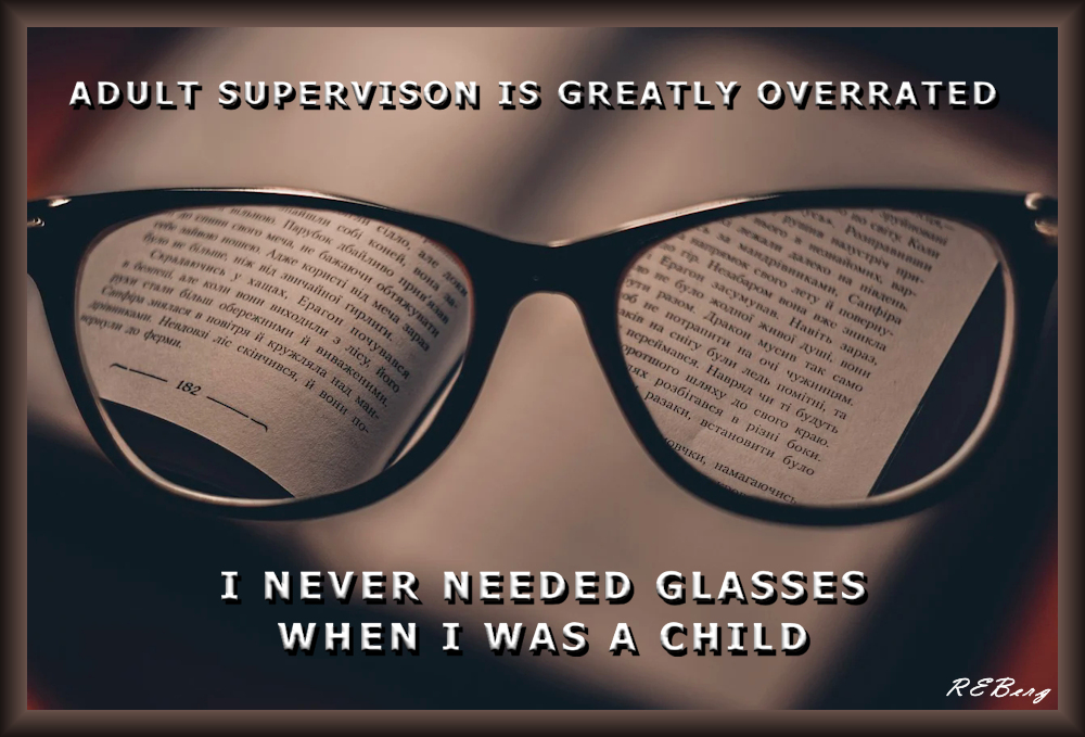 Visual Veracity Image January 29, 2023 R.E. Berg Age Management, humor, joke, meme, Punishingly Punny Too adult, child, eyesight, glasses, need, overrated, superpowers, vision