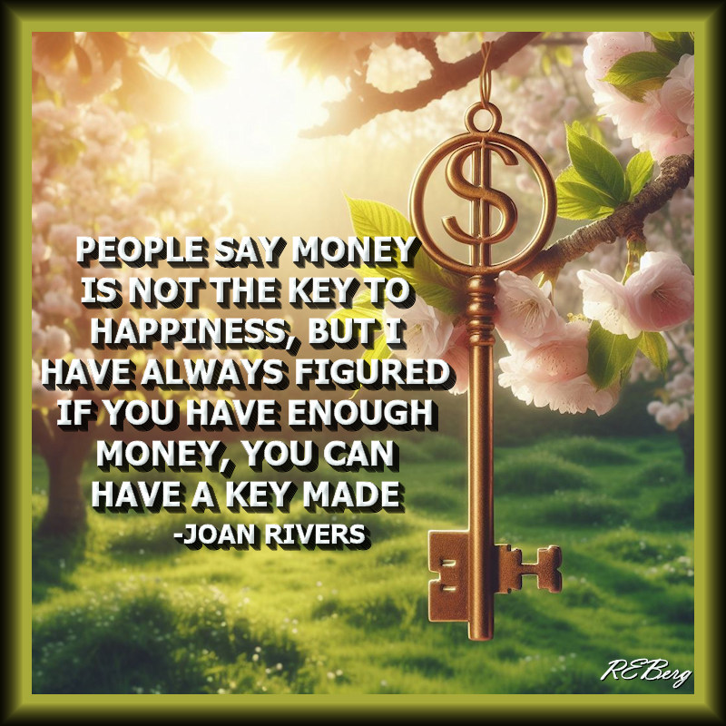 Name Your Price Image April 6, 2024 R.E. Berg Fanciful Finances, humor, joke, meme, Quote Quotient, Random Observations always, figured, happiness, have, Joan Rivers, key, made, money, people, say