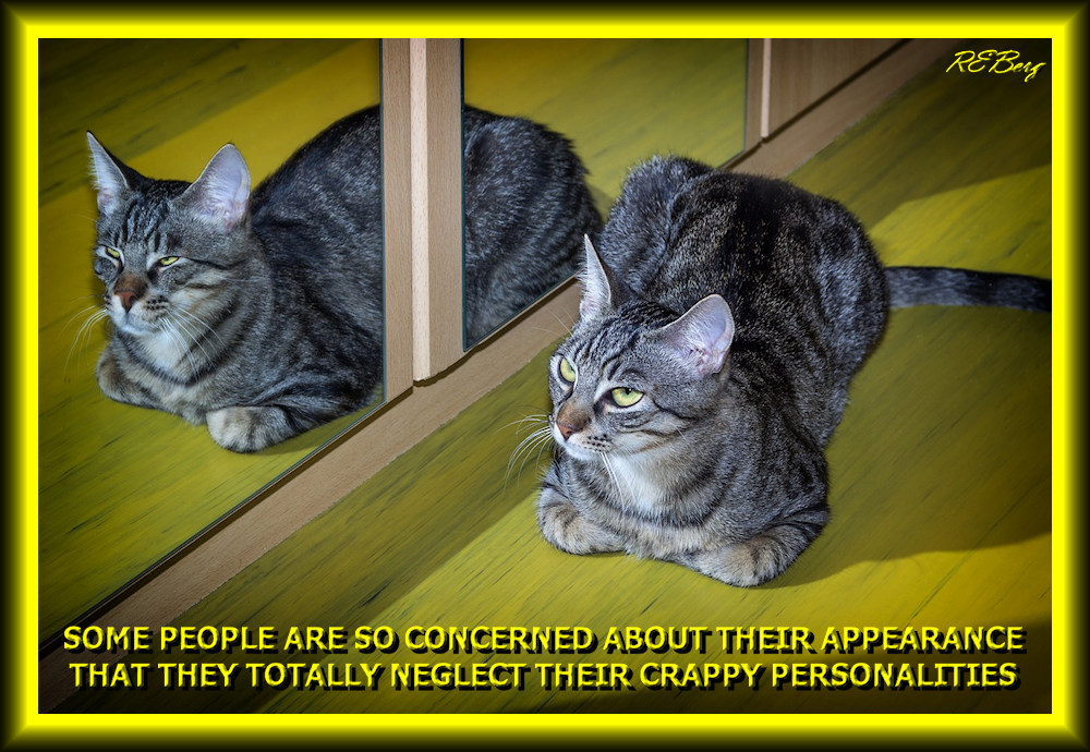 Skin Deep Image May 5, 2023 R.E. Berg Companion Critters, humor, joke, meme, Social Hostility appearance, cat, concerned, crappy, neglect, people, personalties