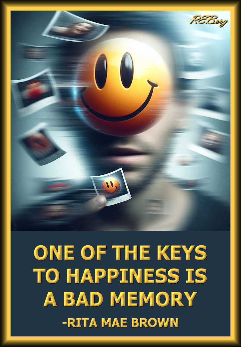 Sweet Oblivion Image April 17, 2024 R.E. Berg Age Management, humor, joke, meme, Mental Gymnastics, Quote Quotient, Random Observations bad, happiness, keys, memory, one, Rita Mae Brown, smiley face
