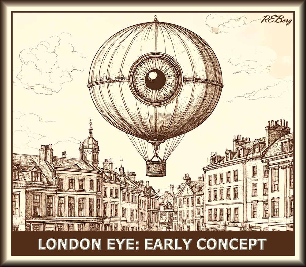 Visual Preview Image November 25, 2025 R.E. Berg Artful Articulations, humor, Imaginary Reality, joke, Marginal Entertainment, meme, Random Observations balloon, drawing, early concept, Ferris Wheel, London Eye