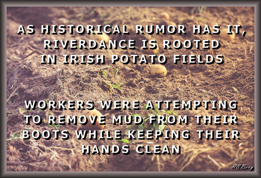 Muddied Inspiration Image August 27, 2023 R.E. Berg Agricultural Acumen, humor, joke, Marginal Entertainment, meme, Musical Mayhem boots, hands-free, history, Irish, mud removal, potato fields, Riverdance, rumor