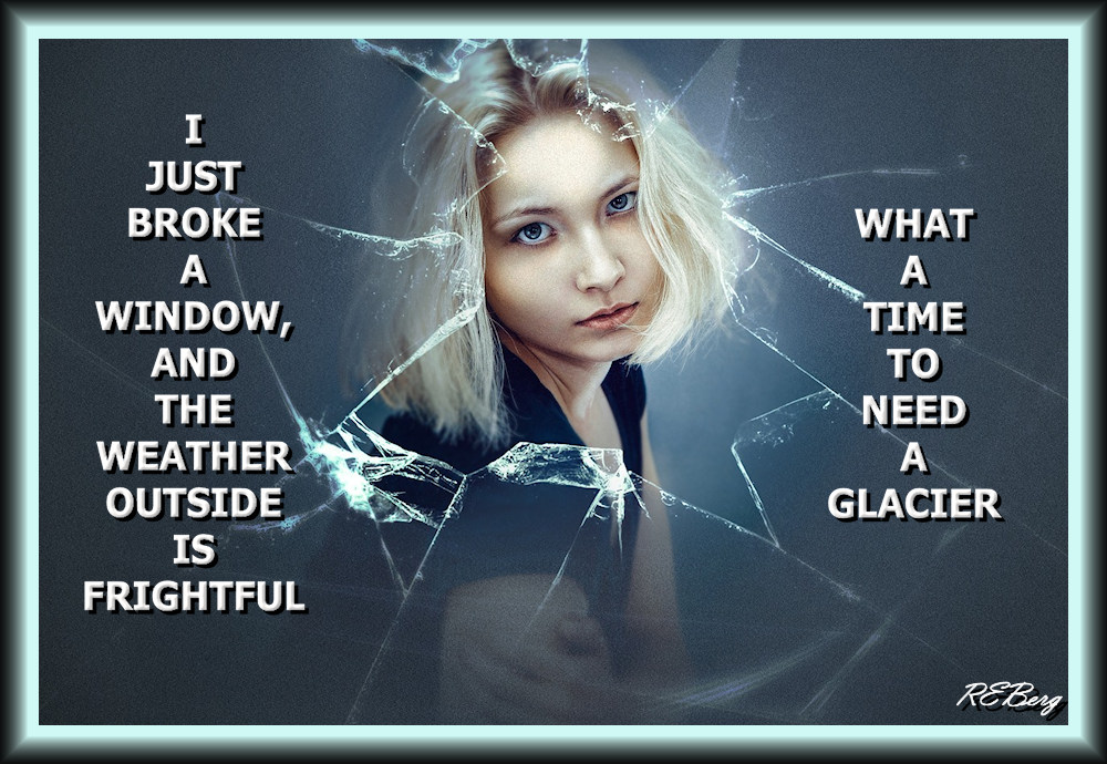 Glass Action Image August 11, 2023 R.E. Berg humor, joke, meme, Punishingly Punny broken, frightful, need, outside, time, weather, window, woman