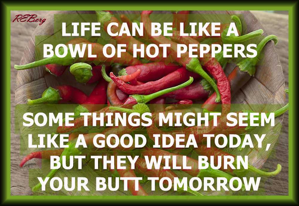 Paying For It Forward Image July 28, 2023 R.E. Berg Culinary Curiosities, Deadly Living, humor, joke, Lively Dying, meme, Random Observations, That's Living bowl, burn, butt, good, hot, idea, life, peppers, today, tomorrow