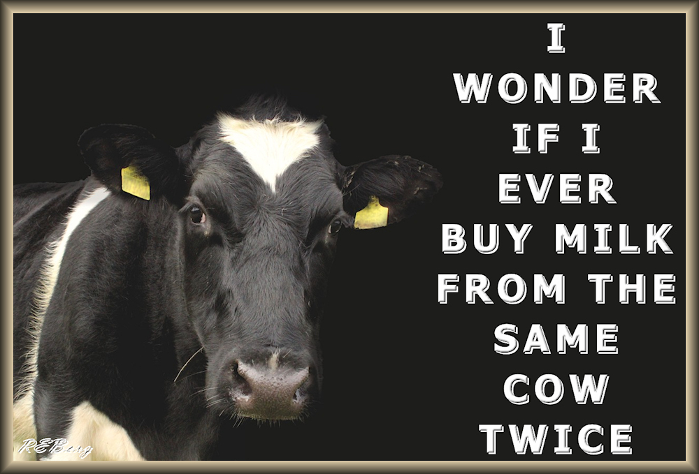 Repeat Customer? Image July 8, 2023 R.E. Berg Agricultural Acumen, Culinary Curiosities, humor, joke, meme, Random Observations buy, cow, milk, same, twice