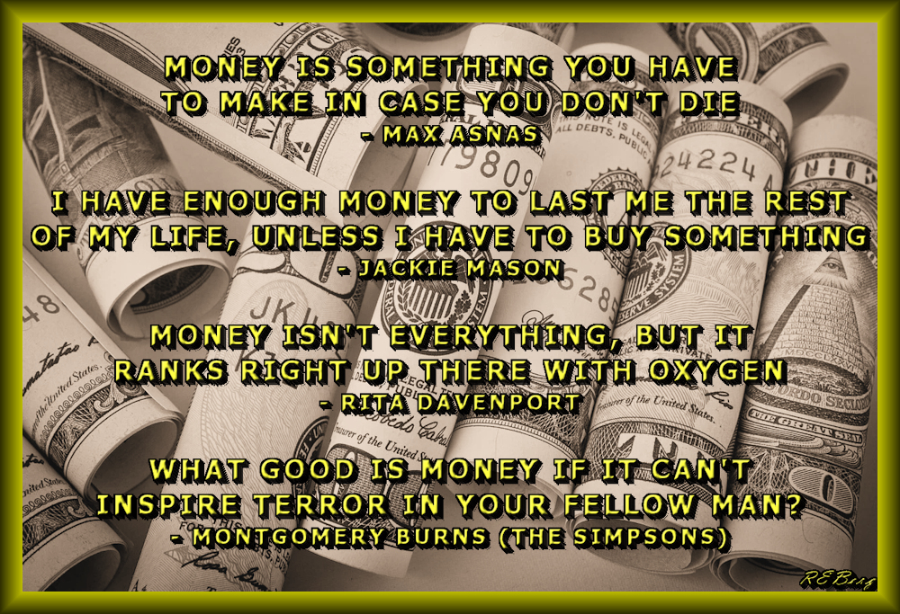 Money! What Is It Good For? Image June 4, 2023June 4, 2023 R.E. Berg Fanciful Finances, humor, joke, Marginal Entertainment, meme, Quote Quotient, Random Observations buy, inspire, Jackie Mason, life, Max Asnas, Montgomery Burns, oxygen, Rita Davenport, sufficient, supply, support, terror, The Simpsons