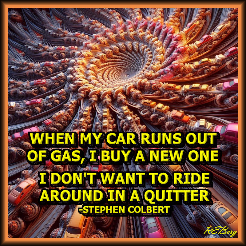 Car Dealer’s Dream Image August 10, 2024 R.E. Berg humor, joke, meme, Quote Quotient, Travel Trauma buy, car, gas, new, out, quitter, ride, runs, Stephen Colbert