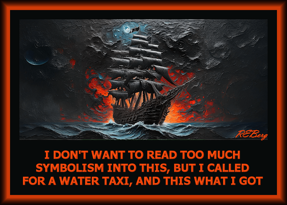 My Ride’s Here Image July 2, 2025July 2, 2025 R.E. Berg Deadly Living, humor, Imaginary Reality, joke, Lively Dying, Locational Logic, meme, Random Observations, Travel Trauma called, don't, got, into this, ship of death, symbolism, too much, want to read, water taxi