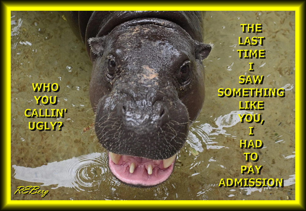 Look Who’s Talking Image May 21, 2023 R.E. Berg humor, joke, meme, Social Hostility admission, calling, hippo, like, ugly