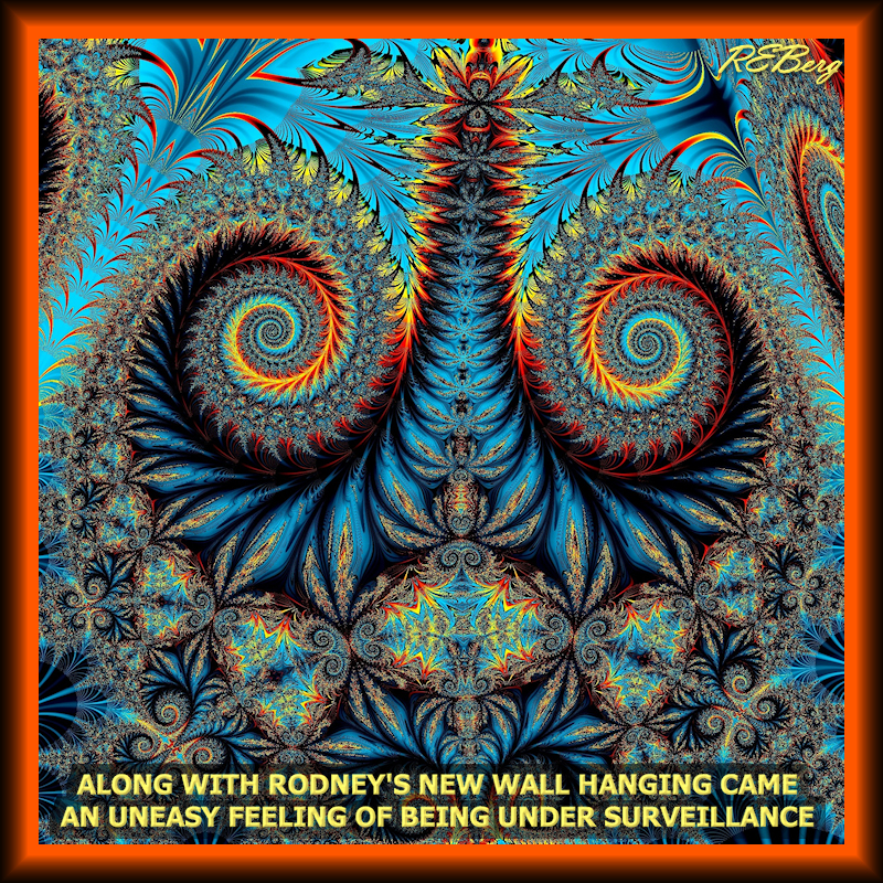 Observation Suspicion Image July 7, 2025 R.E. Berg Artful Articulations, Companion Critters, humor, Imaginary Reality, joke, meme, Mental Gymnastics, Random Observations along with, being under surveillance, came, new wall hanging, uneasy feeling